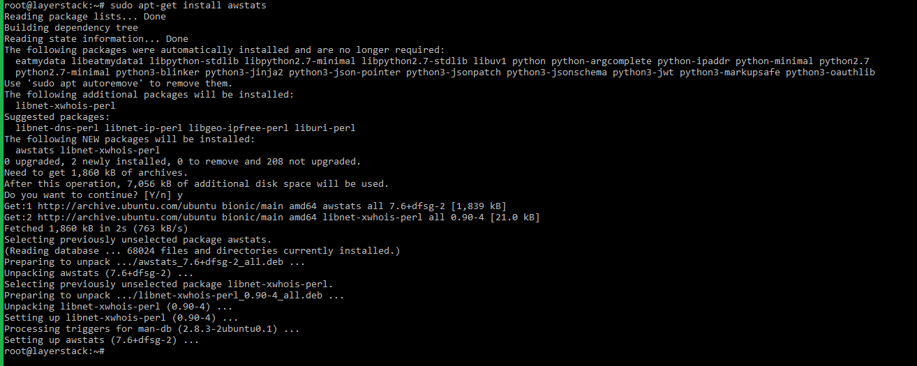 执行以下命令以安装 AWStats 及其所有相关依赖项。